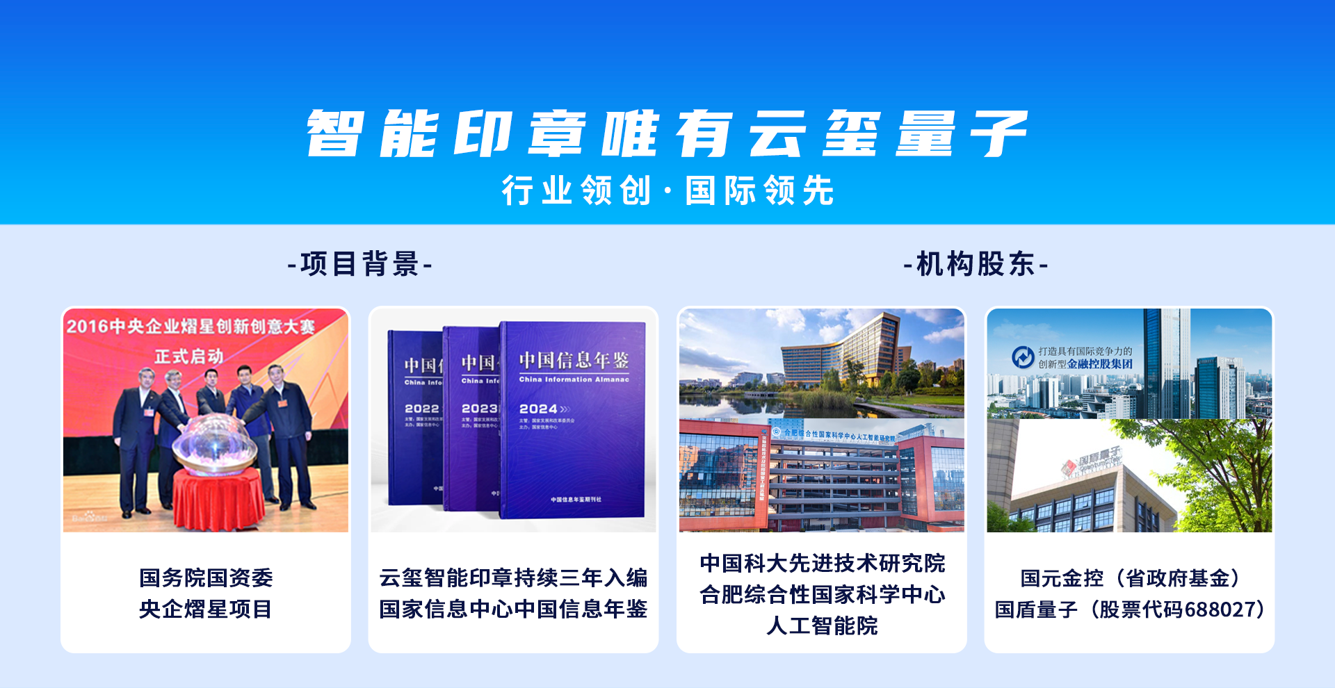 云璽量子是合肥市量子信息產業重點企業,國家信創工委會成員企業,中國信創500強企業。主營業務包括量子安全智能印簽、量子安全智能辦公、量子安全云服務,為政企客戶提供量子安全整體解決方案。